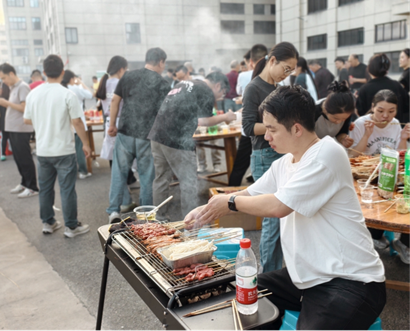 运动的激情过后,是惬意的美食与交流时光。随着炭火点燃,熟悉的烧烤环节再度开启。大家化身为“美食家”,围坐在烤炉边,分享着美味,畅谈着刚才赛场上的趣事,在轻松愉快的氛围中,彼此的情谊愈发深厚。