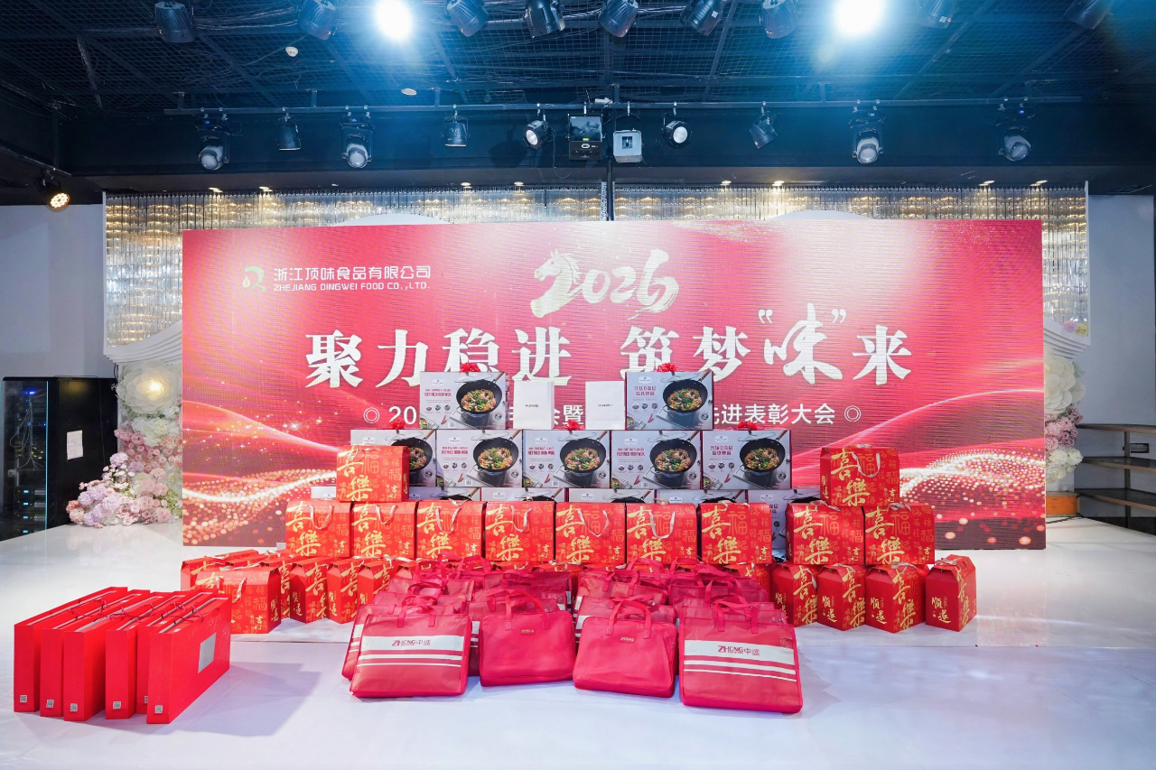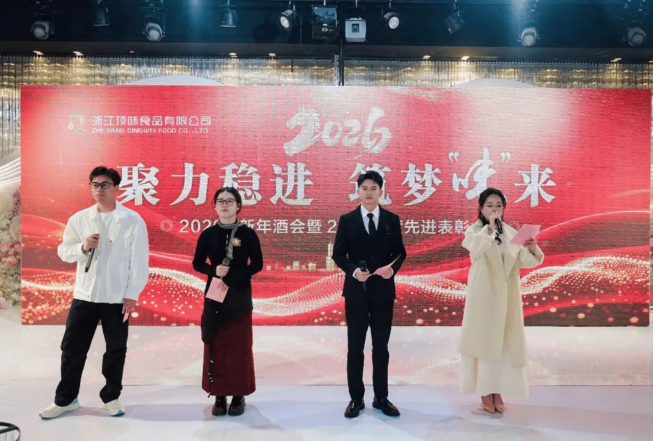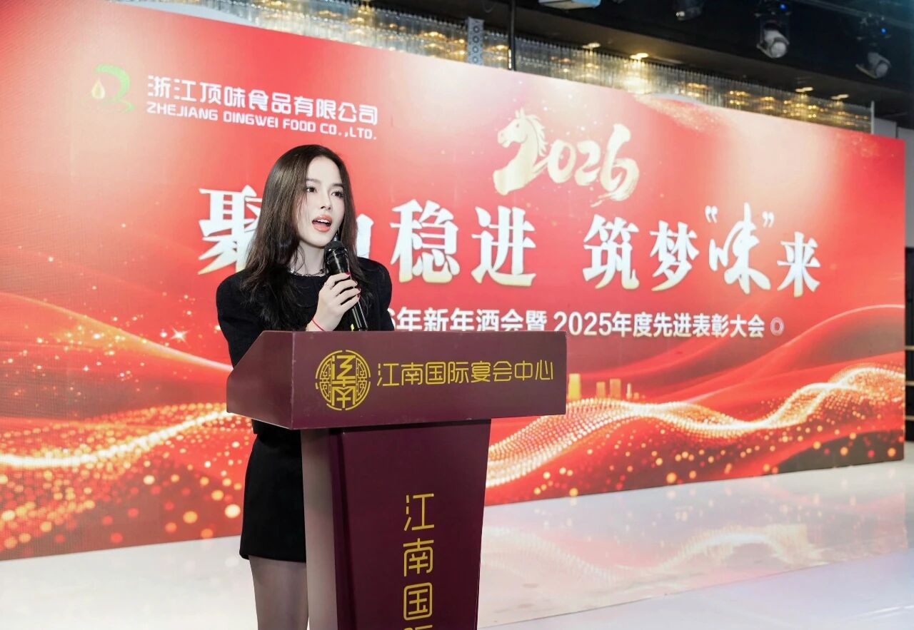2025年12月31日傍晚,江南国际宴会中心华灯璀璨,欢声满堂。浙江顶味食品有限公司2025年度表彰大会暨2026新年酒会在此隆重举行。公司领导与全体员工欢聚一堂,以一场温暖、激昂、精彩的盛会,共同回望奋斗足迹,表彰先进典范,启航崭新篇章。